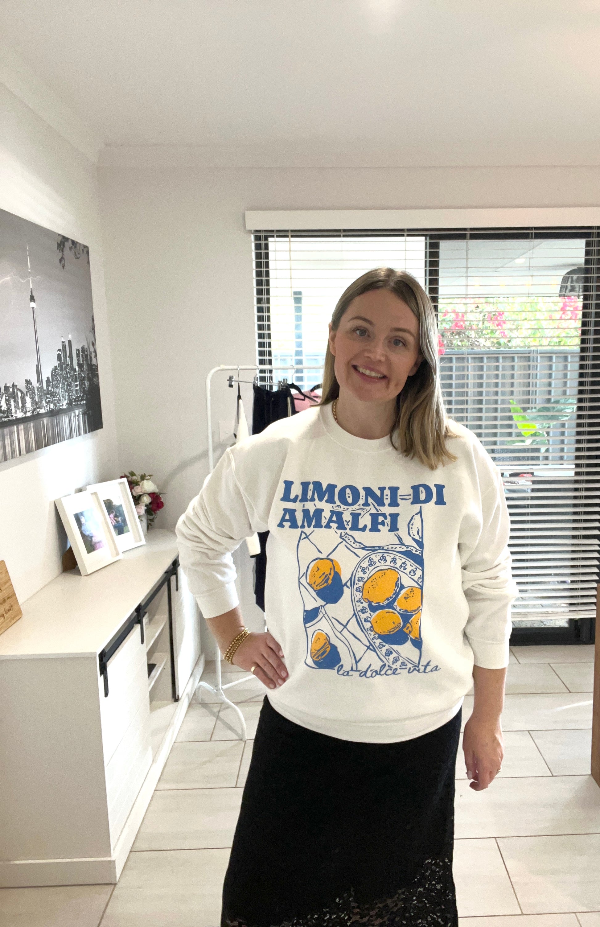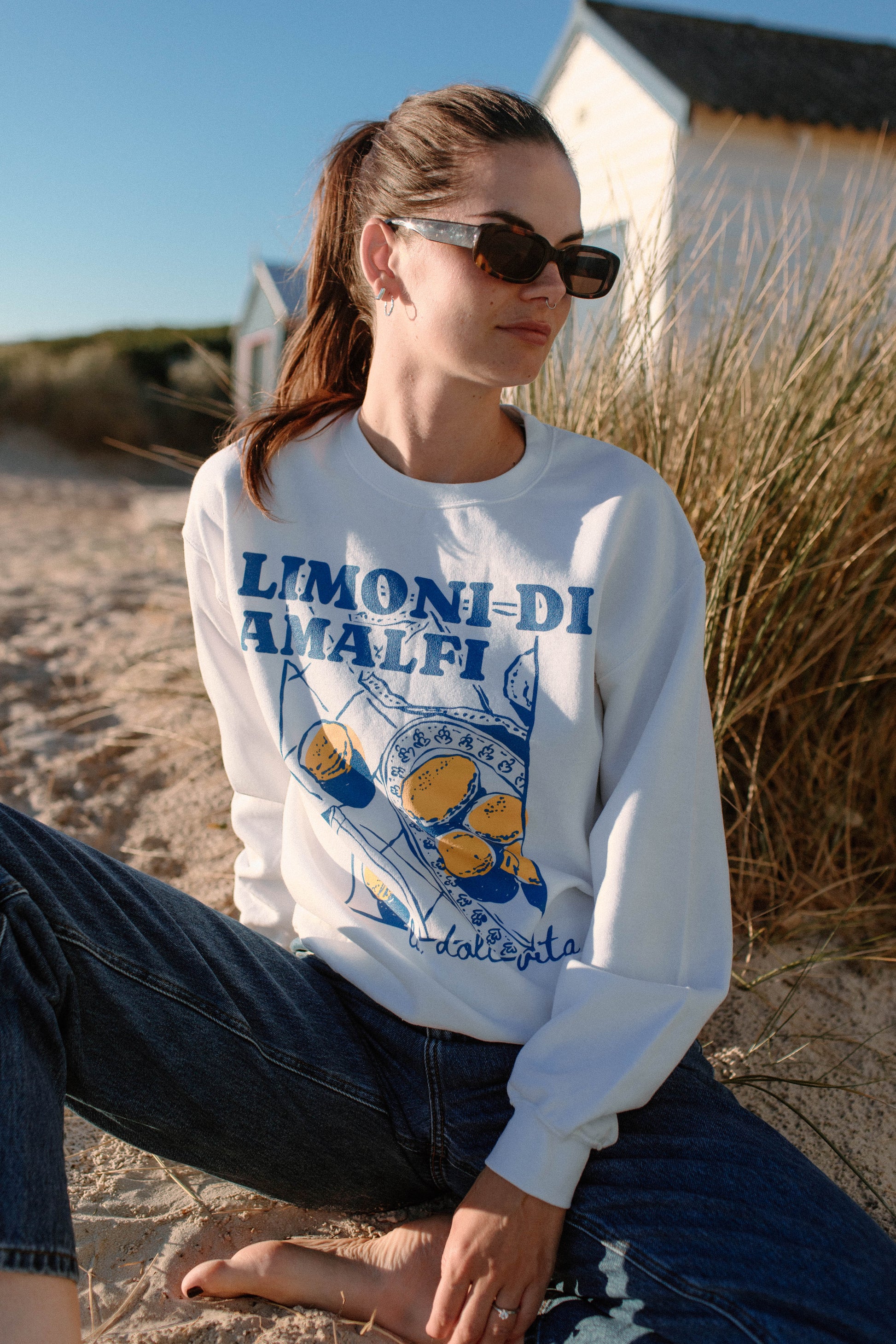 Our Amalfi Lemon Sweatshirt is cute as a button and is the ideal casual sweater to throw on for those cool evenings after the beach or with some jeans for a casual day of sports with the kids.