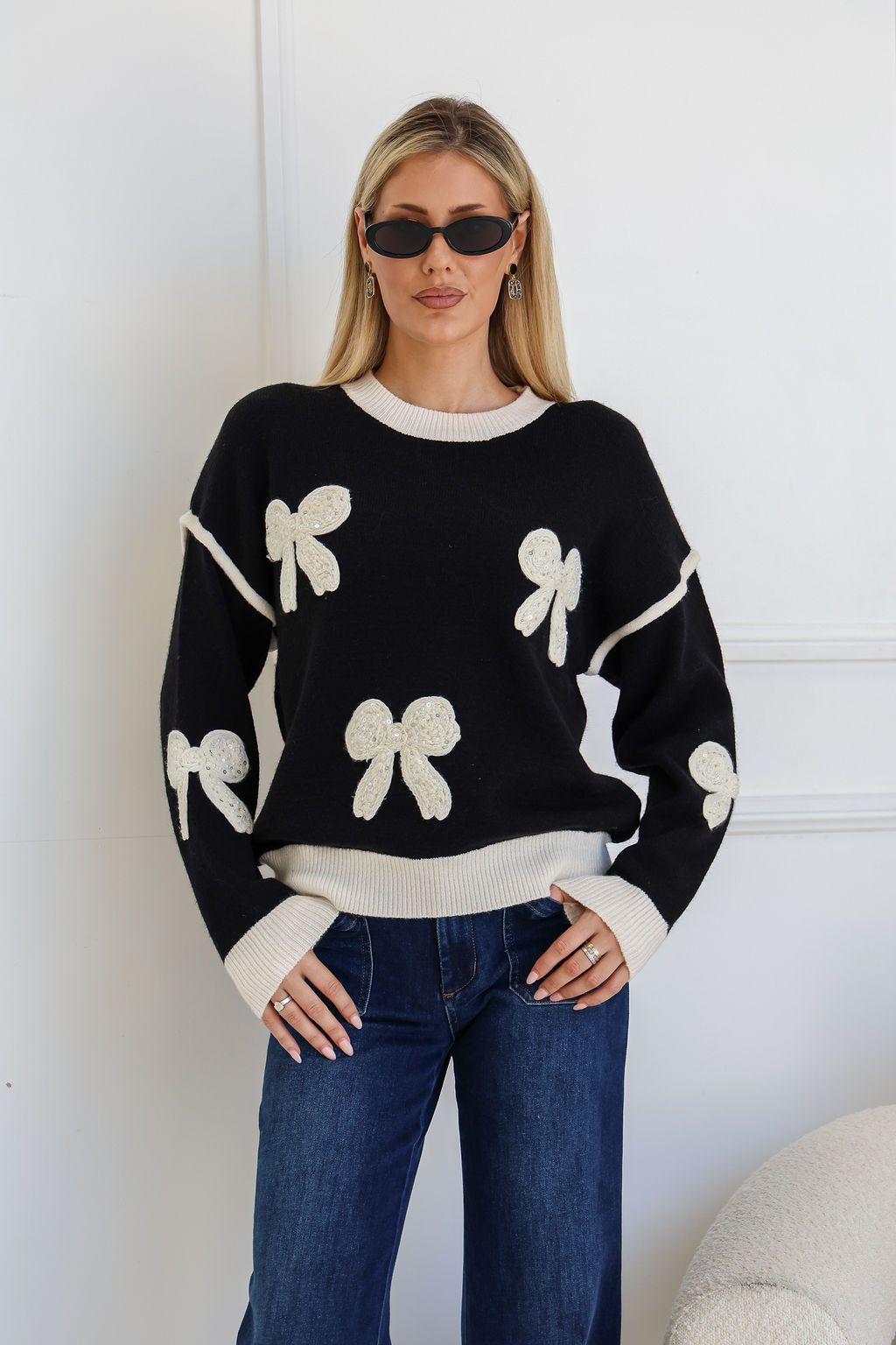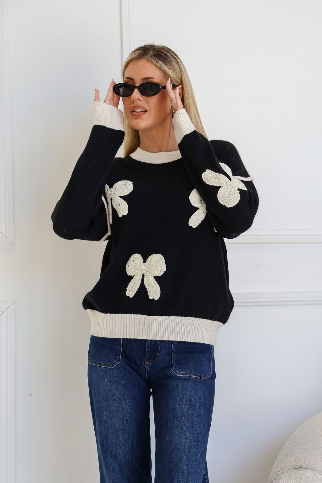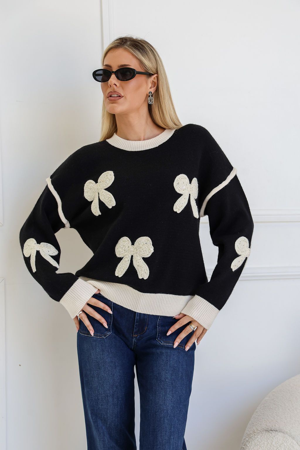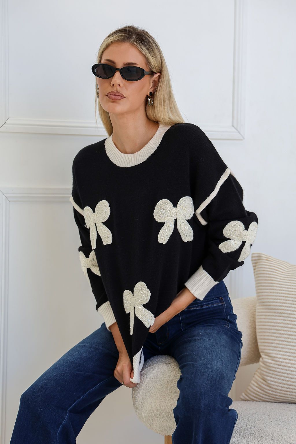 Our Bella Bow Knit will take you from day to night. With a subtle diamanté to the bows it adds just the right amount of sparkle.