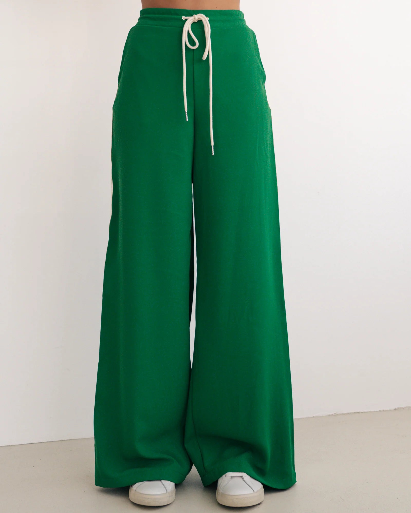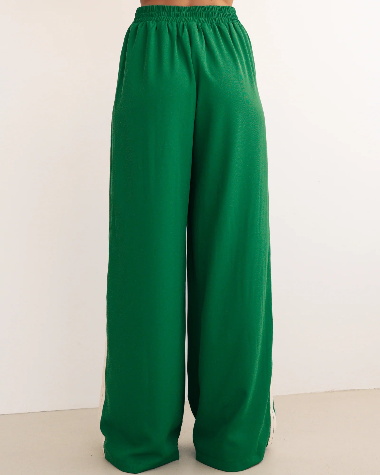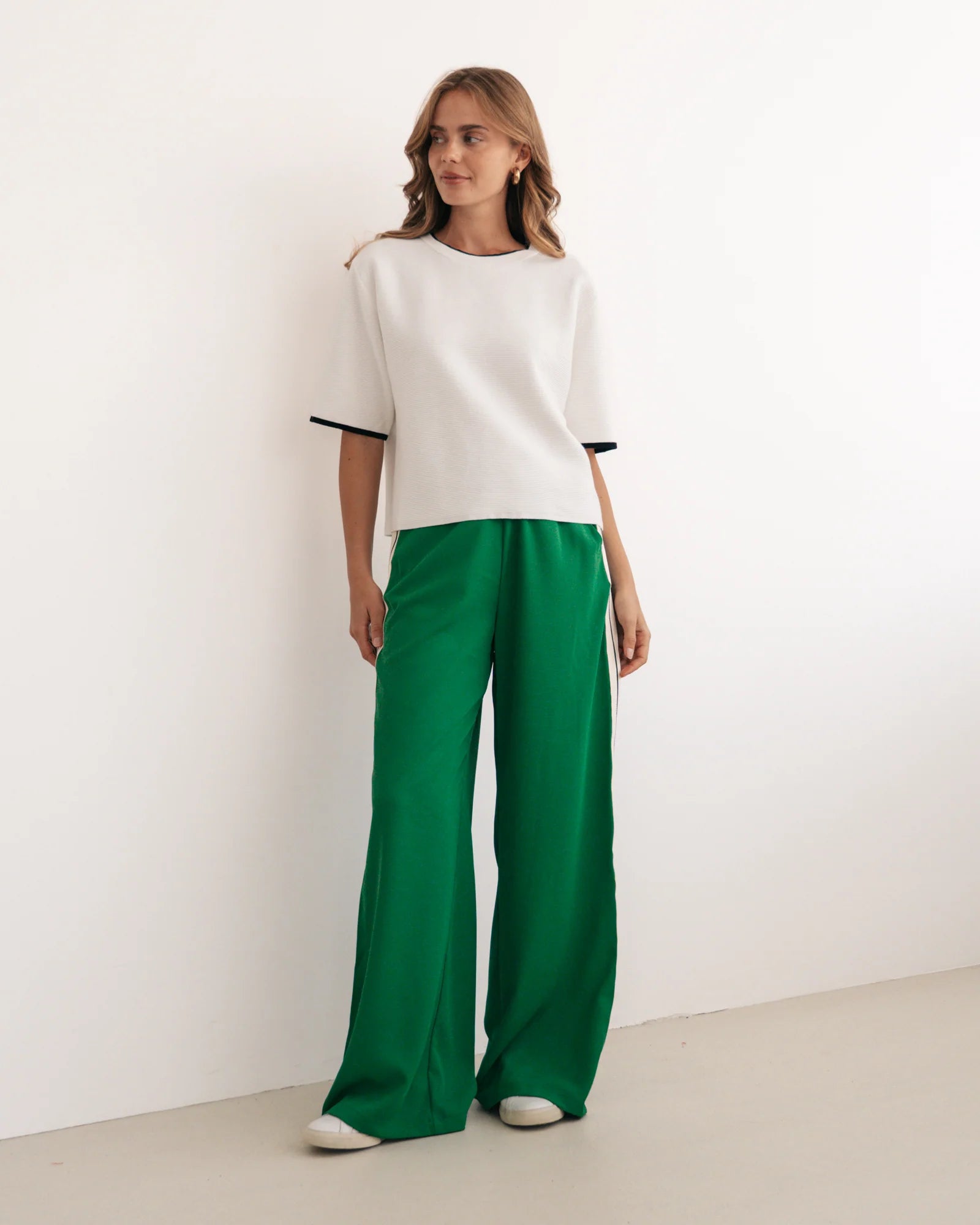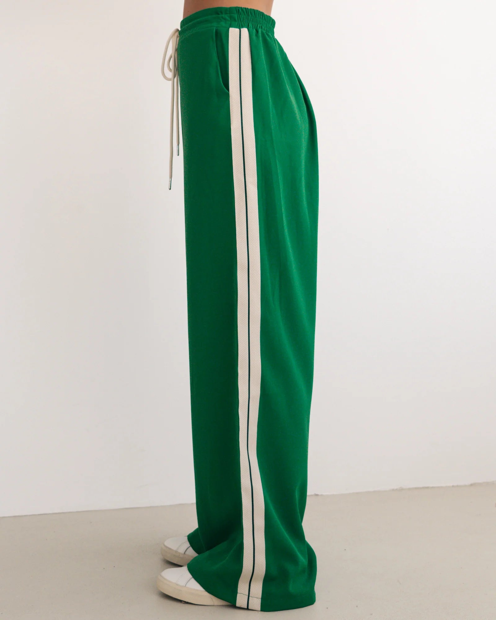 In a gorgeous green colour with a white side stripe they will instantly elevate your outfit and add some brightness to your day! A standout piece, simply add your favourite tshirt or knit and you have yourself a beautiful and unique look.