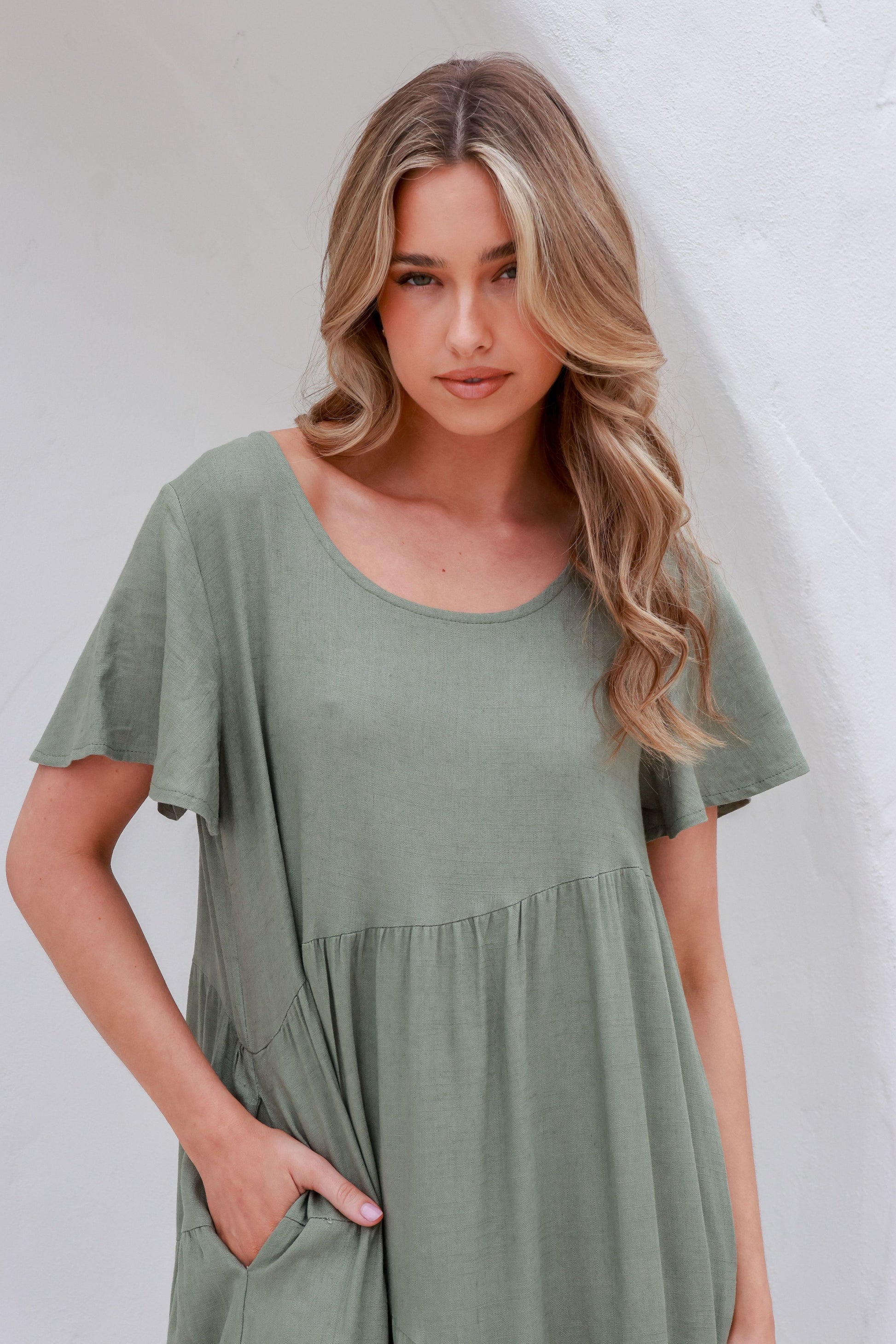 In a fabulous khaki colour, this angle tier maxi dress will be your new best friend for casual days. It couldn't be easier to throw on and go with minimal effort.